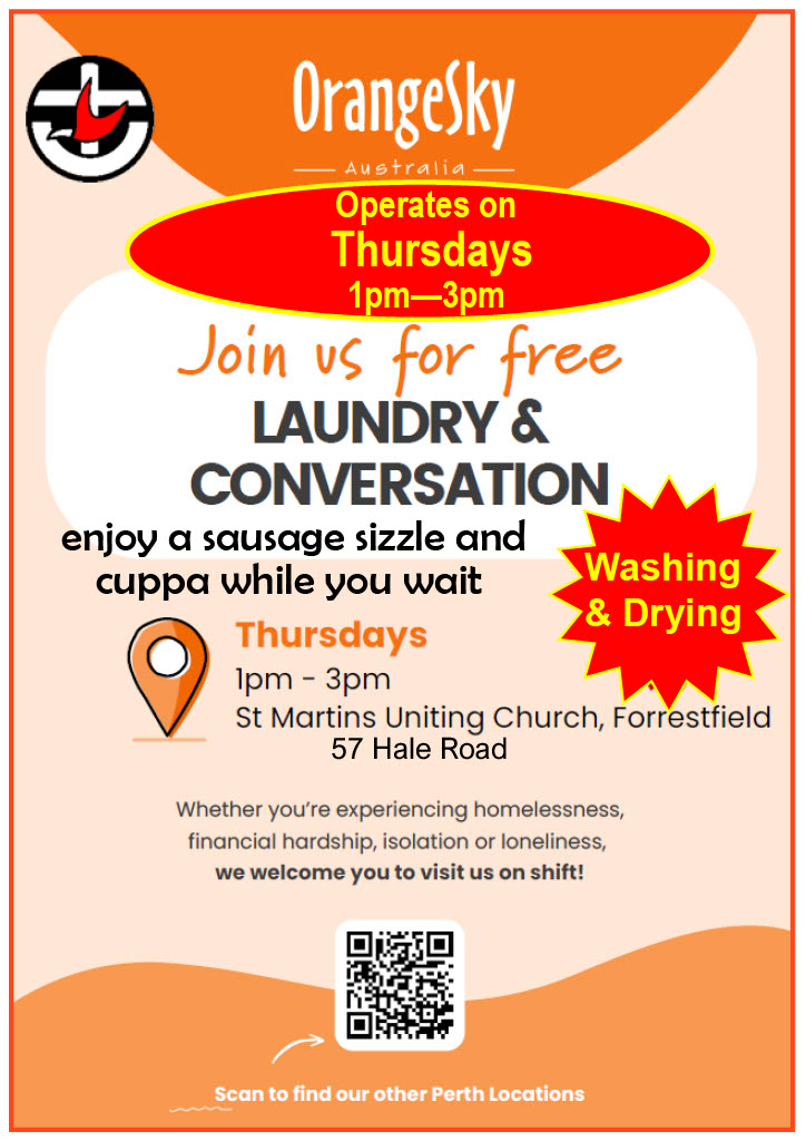 If you or anyone you know could use this service, please come down to the church carpark on a Thursday between 1.00pm and 3.00pm. A free cuppa, sausage sizzle and chat with our friendly volunteers will be provided while you wait for your wash.